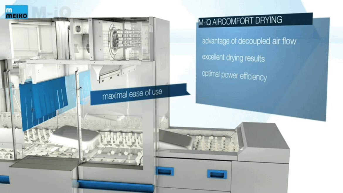 After cleaning in the M-iQ Cup, comes drying. The particularities of the material make plastic cups a real challenge to dry well But using the optimum combination of various drying modules and a vibration drying system, cups emerge completely dry, as well as 100% clean to DIN standards. Residual moisture of 0% means that they can be stored away immediately – and it prevents mould formation.